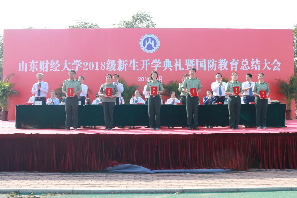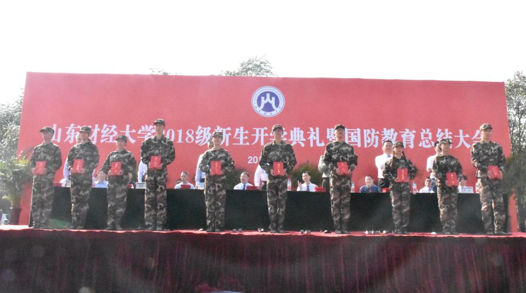 员工工作处、教务处负责同志分别宣读了《关于表彰国防教育先进集体、优秀军训员工、优秀教官的决定》和《关于颁发2018级优秀新生入学奖学金的决定》。球盟会获得2018年国防教育优秀组织单位。球盟会一营一连、格斗术表演方队获2018年国防教育先进连队。正科级辅导员王琦获2018年国防教育先进工作者。2017级经济学一班赵焕琪、2017级经济学二班宋凤蝶、2018级经济学一班徐毓雪获2018年国防教育优秀志愿者荣誉称号。2018级经济学四班刘芊、经济学二班袁红婷、经济学一班张元禄获得优秀新生入学奖学金三等奖。2018级经济学四班冯如阳、李晓航获得2018级生源基地优秀新生奖学金。球盟会郑林曼、史英辉、武欣桐、穆一诺、张艾晨、赵焓彤、高雅馨、刘文丽、李昕、王华南、丁萌、朱乐宸、李帅、孔一清、邢路浠、吴承悦、姜屹楠、臧文豪、庞玲、田慧、朱静、付光美、鞠海昕、何雨润、都思源获得优秀军训员工称号。