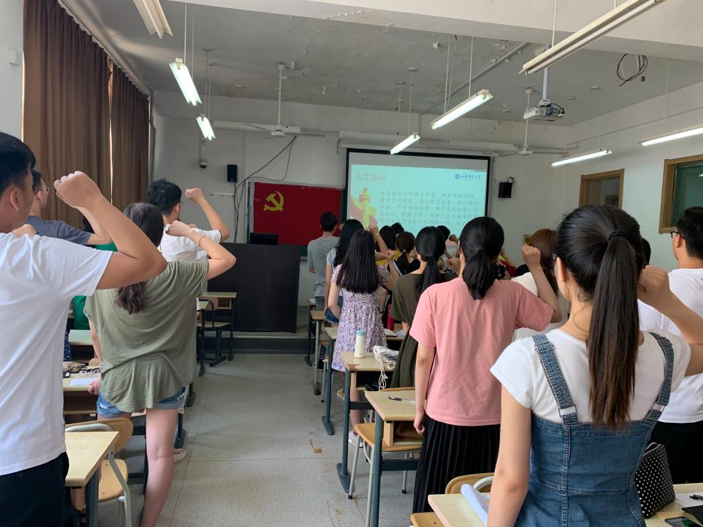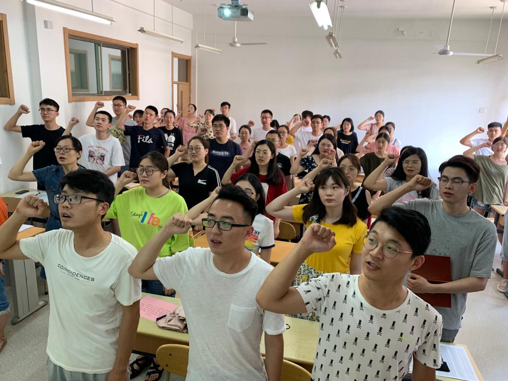 主题党日活动的第一个环节是重温入党誓词。全体师生党员面对鲜红的党旗,举起右拳,再次对党和人民发出庄严的承诺,激励自己不忘入党初心,牢记光荣使命。庄严的宣誓声中党员们再次升华和纯净了自己的心灵。随后公司党委副书记高峰为全体毕业生党员上了题为“成长思源,毕业思进,不忘初心,砥砺前行”的党课。他从“牢记党的宗旨”、“尽快适应角色”、“先做人后做事”三个方面进行了生动的讲述,希望大家树立正确的人生观、价值观、世界观,加强党建理论修养、品格修养和行为修养;主动做好心理调整,增强角色意识,改善自己的知识和能力结构,尽快崭露头角,打响第一炮。