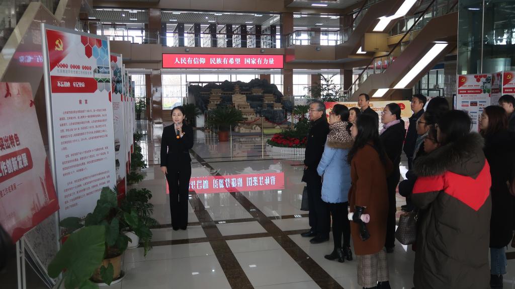调研队一行在山东城市建设职业公司经济管理系党总支书记董文涛、办公室行政科长张伟的陪同下,参观了公司党校环境建设、党校文化,观摩了智慧党建平台建设和使用情况,参观了公司党委履行主责、完善机制、夯实基础、创新载体、打造品牌的党建工作成果展和“不忘初心、牢记使命”主题教育工作展。在图书馆馆长董桂花陪同下,听取了图书馆样板党支部“创新党建工作,服务立德树人”为主题的工作情况介绍,参观了古建筑构件收藏馆、初心书苑、中华优秀传统文化特藏室、校史馆及山东省广厦文化艺术研究中心等育人场所,在创艺工坊参观了建筑环境设计VR创艺工作室、雕刻创艺实训基地和公司员工的创意作品。
