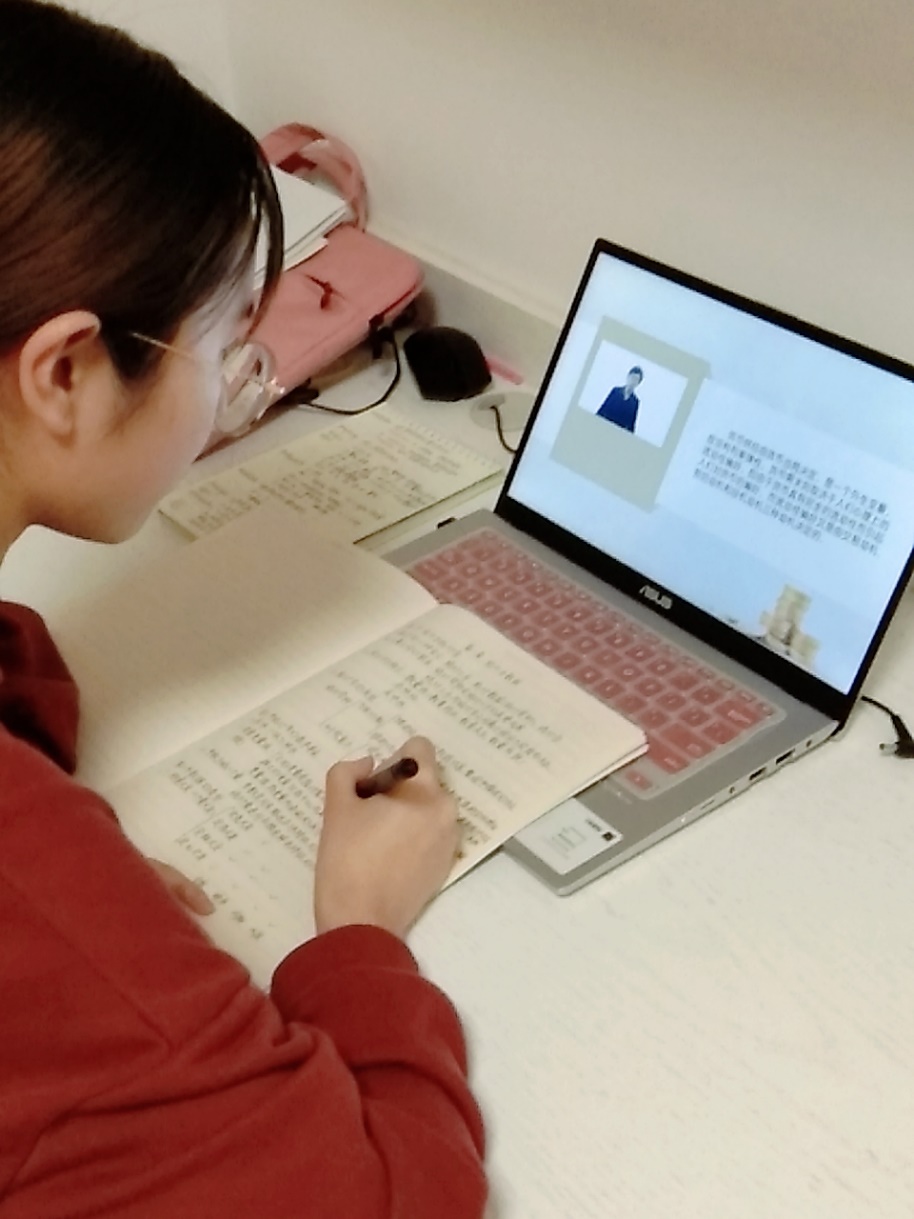 网课的学习最考验一个人的意志力。君子慎独,真的一个人面对着屏幕的时候,能否集中注意力是非常考验人意志的事情。网络学习与课堂学习最大的区别就在于自我约束和自我管理,公司已经为我们提供了充分的学习策略和学习资源,只要按照老师要求,根据自己的情况制定好策略,我相信我们会收到不弱于平时的学习效果。