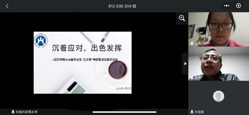 (通讯员:王亚锟)4月27日晚20:00,球盟会借助腾讯会议网络平台举办“沉着应对,出色发挥”——2020届毕业生“云分享”考研复试经验交流会。公司党委副书记高峰,就业办主任裴斐,毕业班辅导员李冰封、付雯出席本次交流会,公司2020届考研初试上线同学和2019届就读研究生代表参加。会议由李冰封主持。