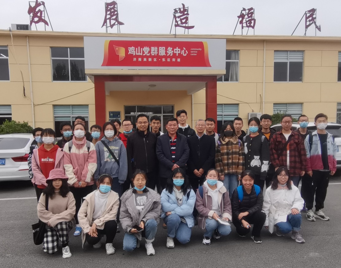 11月5日下午,2018、2019和2020级乡村振兴创新实验班同学在公司党委副书记高峰,农经系主任齐永华带领下,赴济南市高新区东区街道鸡山村开展实习调研活动。鸡山村党支部李军书记和刘巨山副书记热情接待了大家。刘书记就鸡山村的历史沿革、村情村貌、产业经济、文化教育等方面做了全面介绍,互动环节,同学们踊跃提问,双方就农户收入、征地拆迁、补偿安置、养老保障、医疗卫生、脱贫攻坚、村庄规划、古建筑保护等问题进行了深入、广泛的交流。