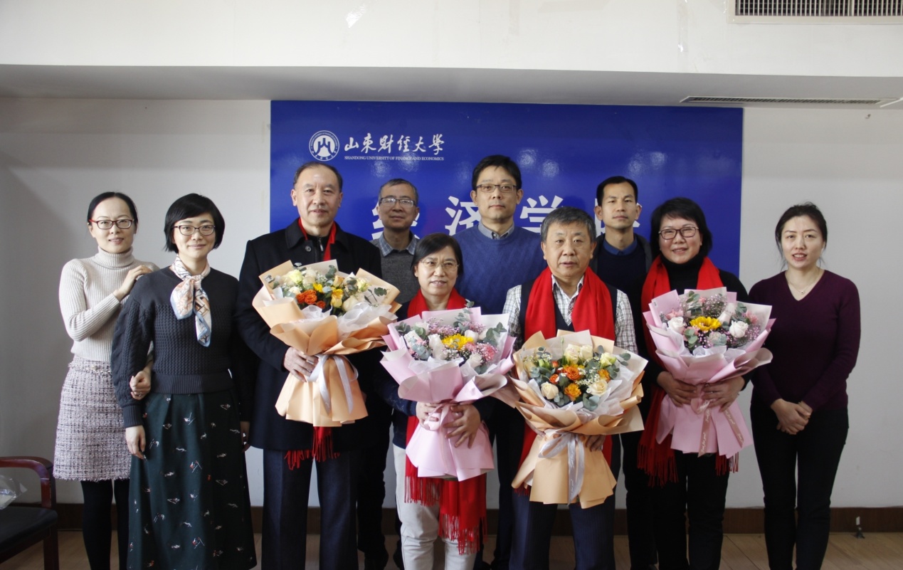 1月14日上午,球盟会在舜耕校区办公楼1208会议室举行2020年教师光荣退休座谈会。荣休教师张志勇、秦宪文、张红霞、郝国彩,党委书记姜伟、经理谢申祥以及院领导班子成员、公司行政人员共同见证了这一简短而温馨的时刻。