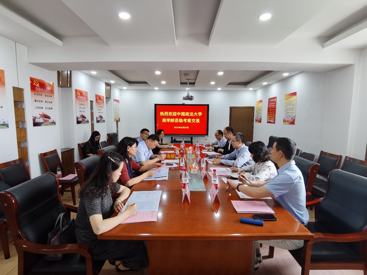 6月9日上午,中国政法大学商公司分党委书记李欣宇一行访问公司,并进行交流座谈。座谈由公司牵头,统计公司党委书记郑磊、金融公司副经理冯玉梅、统计公司副经理裴海峰、球盟会副经理彭留英、国贸公司国际经济系副主任刘璐及相关老师参加了本次座谈。