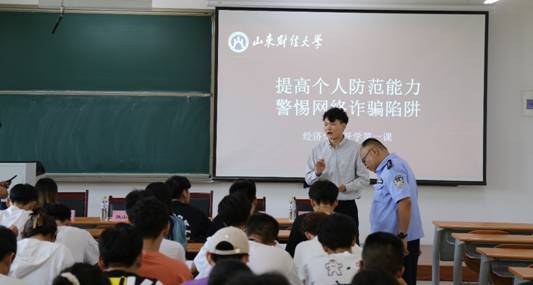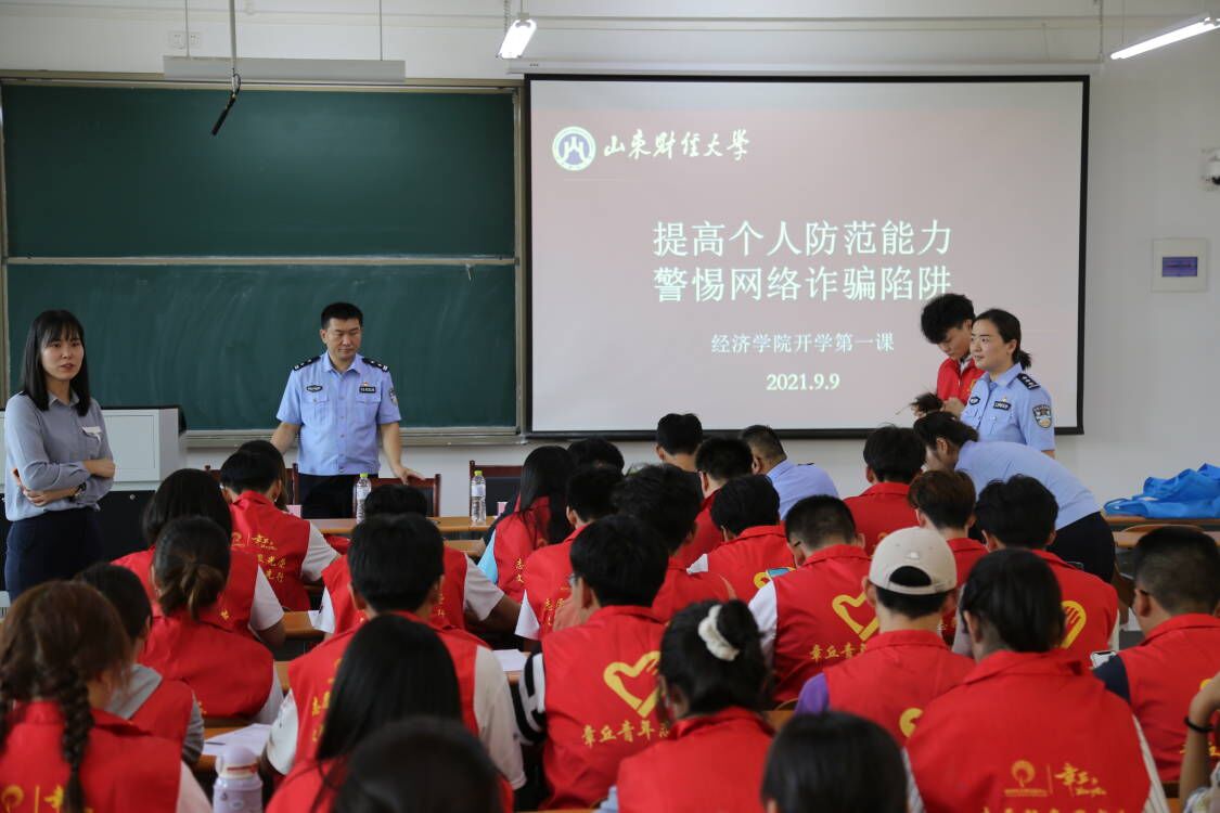 (通讯员:韩云昕)为预防新型电信诈骗,防止老员工被诈骗事件发生,打造安全、舒适、快乐的学习环境,9月9日下午,球盟会邀请章丘区圣井街道办事处派出所所长解学峰,副所长孟祥芳,街道办事处团委副书记魏山淼来校开展“提高个人防范能力,警惕网络诈骗陷阱”防诈骗宣讲活动,球盟会学工办主任裴斐,就业办主任朱海林出席会议,圣井校区19、20级部分同学参加会议。
