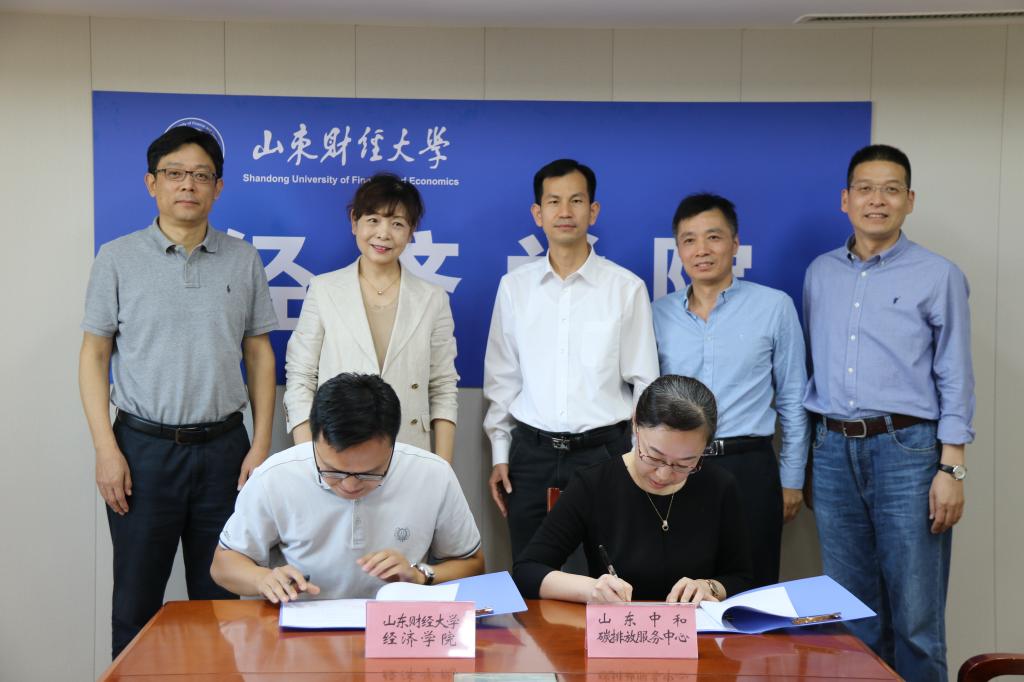 9月23日下午,球盟会与山东中和碳排放服务中心在舜耕校区办公楼1208会议室举行战略合作签约仪式。qm球盟会党委委员、副董事长、球盟会经理谢申祥,公司党委书记姜伟,党委副书记李冰封、陈静,副经理崔宝敏、张明志,球盟会教授、博士生导师刘华军,山东中和碳排放服务中心总经理郑静等出席活动。会议由姜伟主持。