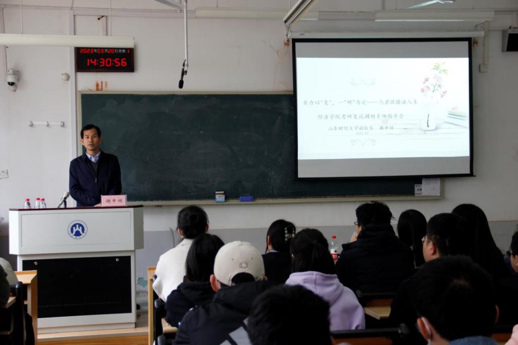 谢申祥从复试、调剂、就业三点与同学们展开深入交流。一是针对自我介绍、英文问答等面试环节,就如何克服面试紧张状态、仪容仪表等细节进行详细阐述,并就复试过程中的经济学问题和考官心理活动进行了演绎与分析。二是介绍了调剂院校和专业方向的选择、调剂院校的筛选条件以及调剂信息搜集的各种渠道,鼓励同学们发挥主观能动性把握好调剂时间和机会。三是从当前经济复苏的大好形势以及员工自身职业发展角度,结合自身求学经历,给员工分析了考研、调剂、就业、二战等的利弊,强调除了考研,还可以选择就业、考公等不同道路,应多样化地规划人生未来。