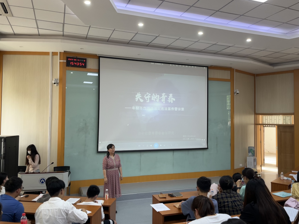 公司开展“青廉课堂”——2023届毕业生党员廉政教育党课。公司党委书记姜伟以《锤炼党性,廉洁自律》为主题,深入阐释了全面从严治党的重大意义,并结合典型案例,深刻剖析了年轻干部违纪违法的特点和原因,警示同学要勤弹“思想尘”、多思“贪欲害”、常破“心中贼”、慎独慎微,知敬畏、存戒心、守底线,要树立正确的人生观、权力观和道德观,增强法律意识,坚定理想信念,牢记初心使命,扣好廉洁从业的“第一粒扣子”。他指出,“青廉课堂”是提高毕业生党员廉洁自律意识的重要举措,希望同学们坚定理想信念,坚定不移听党话,跟党走,筑牢廉洁从业思想道德防线,提高拒腐防变和自我保护能力。