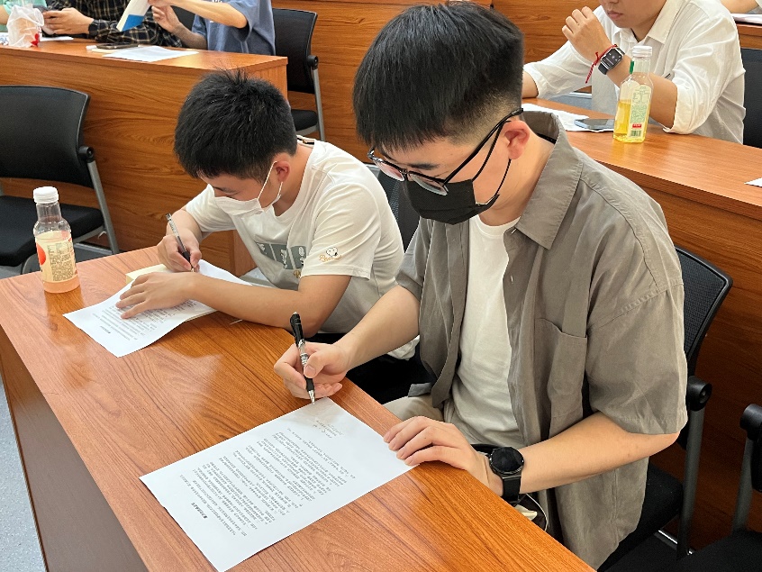 公司组织全体毕业生党员签署《廉洁自律承诺书》,提醒大家树立廉洁意识,恪守学术诚信,强化“红线意识”。守纪律、讲规矩、知敬畏、不逾矩,切实提高党员廉洁自律的政治自觉、思想自觉和行动自觉。