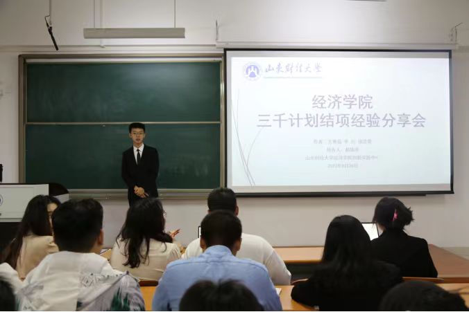 校重大项目智产“乡”融:数字经济赋能乡村产业振兴的作用机制研究——基于鲁、苏、甘、辽、川五省实践调研团队负责人王一涵从“三千计划”的含义、选题背景、前期准备、撰写调研报告、团队调研素材的收集等方面向同学们分享经验。她分享到,调研后要及时整理访谈记录,系统归纳获得的音频、视频、调研日志等材料,记录时要避免口语化,兼顾深度和广度,并提出数据分析可以从编程、数学模型等入手,采用AHP、topsis、灰色评估模型、解释结构模型等评价法的建议。