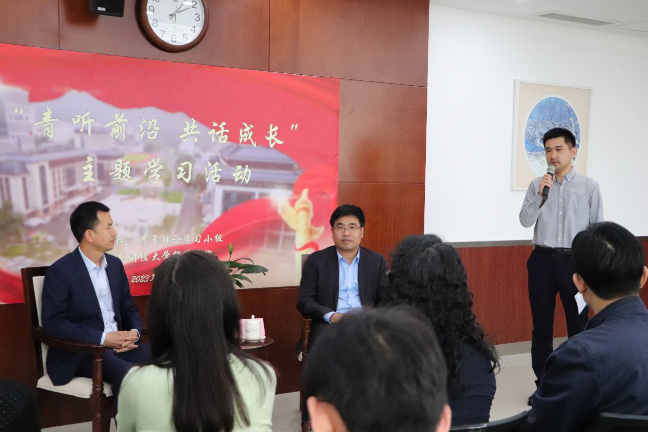 球盟会青年教师、数字经济学系副主任刘建旭,省委党校(山东行政公司)第十四青年理论学习小组成员、经济学教研部教师张友鹏,qm球盟会2021级产业经济学专业硕士研究生陈超,省委党校(山东行政公司)2022级政治经济学专业硕士研究生刘振,先后作为代表进行了交流发言。谢申祥、黄凯南现场与青年师生进行了互动交流。